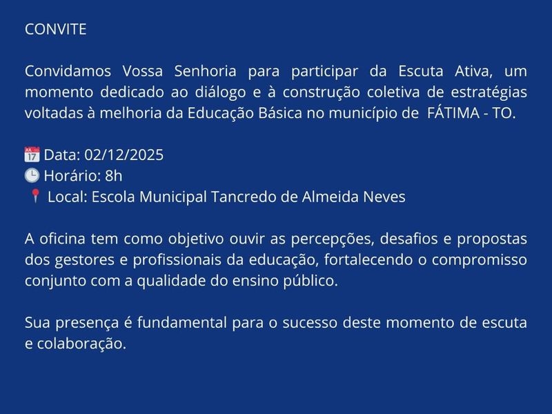 Segundo o convite oficial, a iniciativa visa "fortalecer o compromisso conjunto com a qualidade do ensino público", permitindo que as estratégias de melhoria sejam desenhadas com base na realidade vivenciada nas escolas de Fátima.
